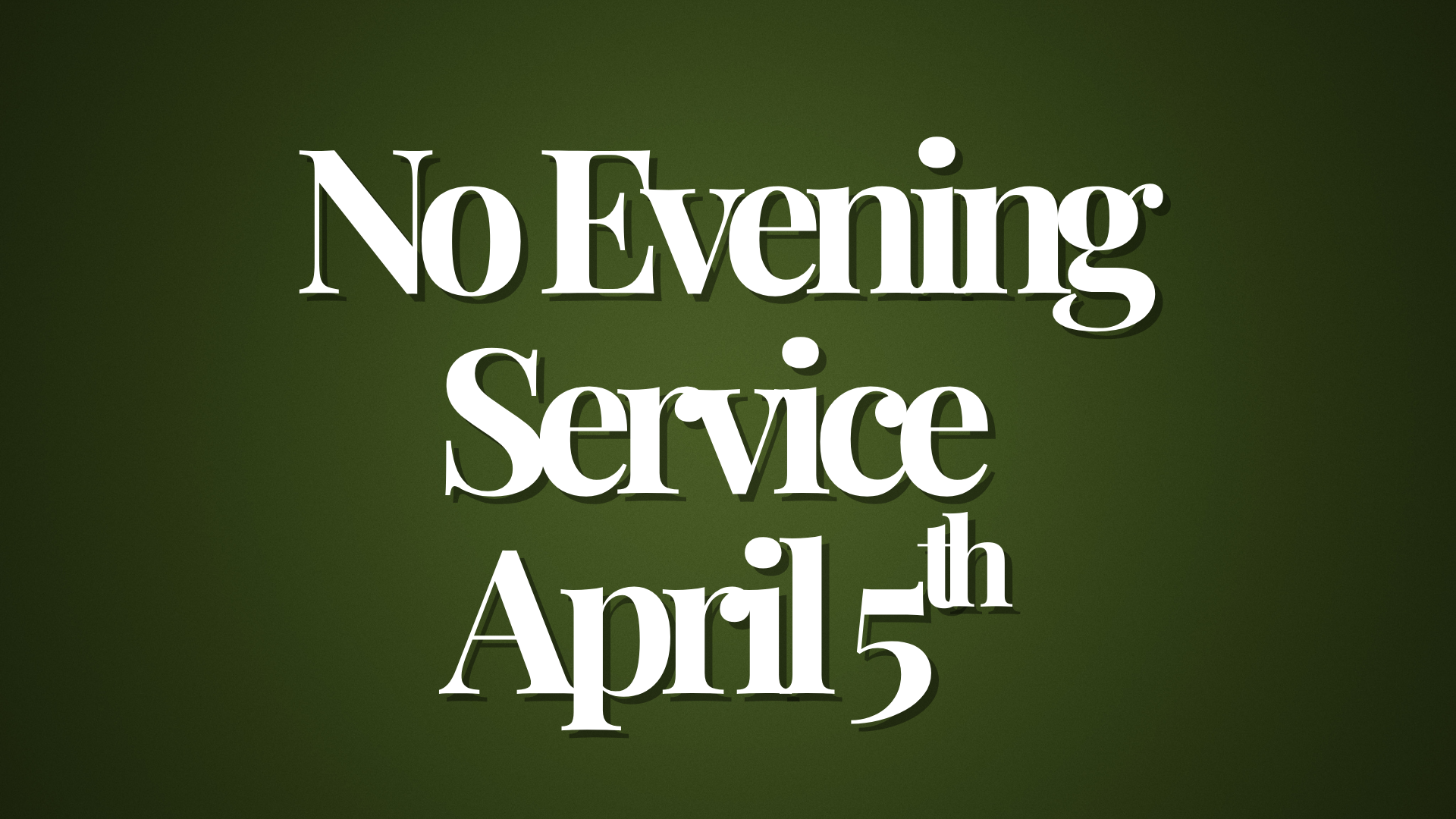 No Evening Prayer & Praise Service There will not be an Evening Prayer & Praise tonight. Date Apr 05 2026 Expired! Labels Sunday Services Location Southside Assembly Share this event